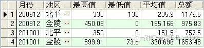 按照月份和地区求打工收入最高值,最低值,平均值和总额