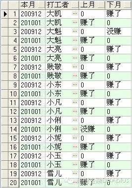 求出每个打工者上个月和下个月有没有赚钱(personincome大于零即为赚钱)