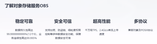 随着时代的不断发展,不管是个人还是企业对数据的存储要求也越来越高,对于普通人来说,我们可以把文件、视频、图片等等存储到电脑、手机或者U盘等硬件设备中,但对于企业来说,庞大的数据量必须依靠专业的存储设备才能完成,因此有些企业会选择自建存储服务器来存储数据,但不管从数据存储量还是安全性和可靠性上来说,自建存储服务器都有着天然的劣势,因此现在大多数企业都会选择云存储,华为云推出的对象存储OBS就是一款非常优秀的云存储产品。