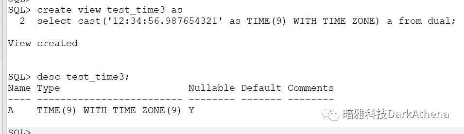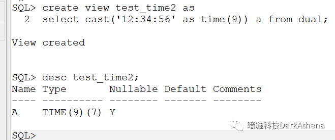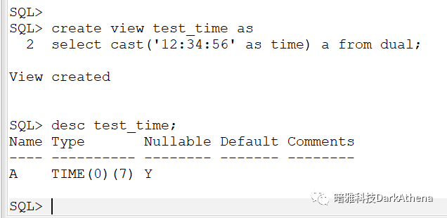 看上去貌似是 time(0)(7) ?先再来一个create table as select * from 视图