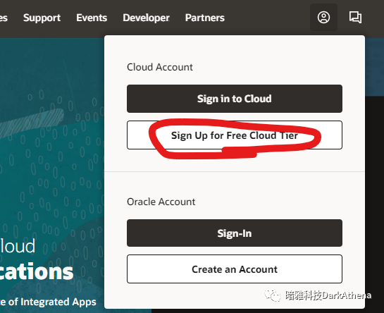 2. 点击页面右上角的人头,选择"Sign UP for Free Cloud Tier"