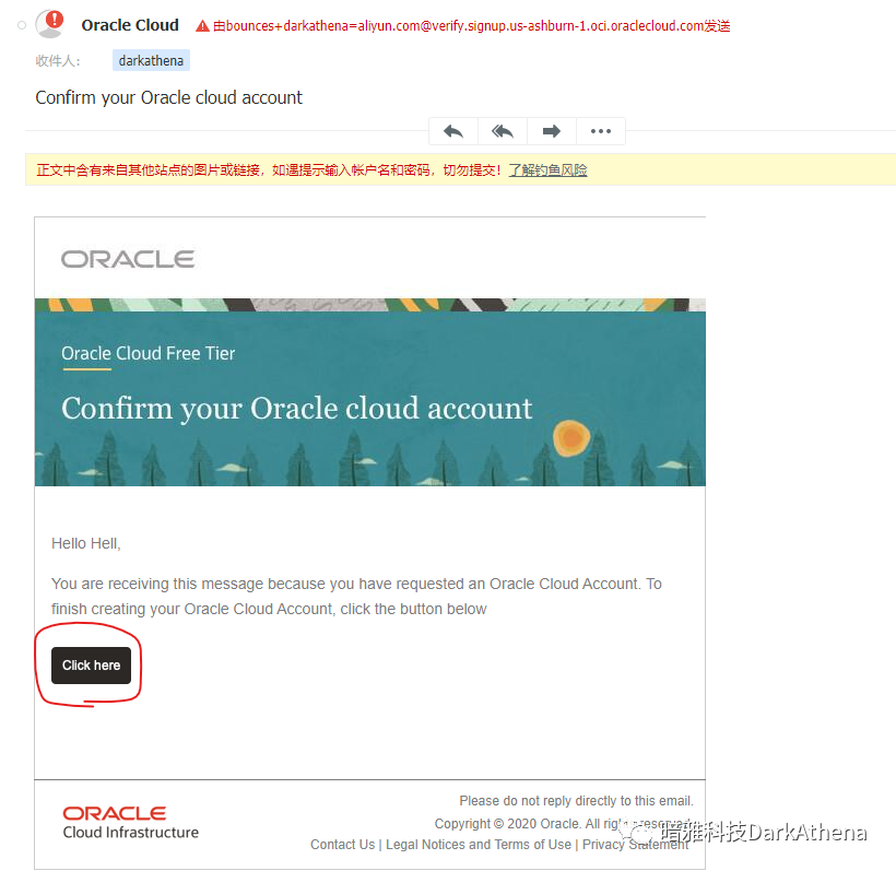 5. 进入邮箱,找到邮件,点击"click here",如果没看到邮件,请在垃圾箱里找