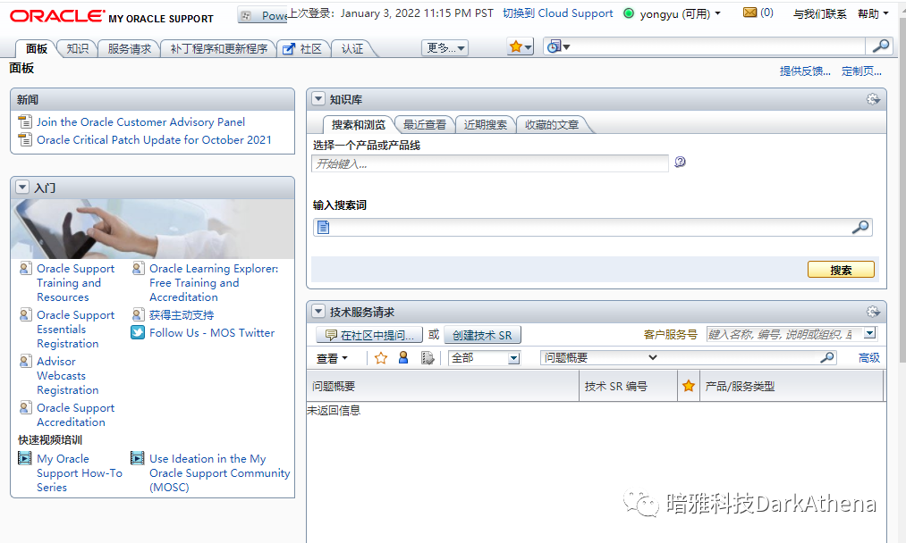 当你购买了oracle的相关产品,比如数据库、应用软件等,你就可以凭这个产品的销售编号申请进入MOS的页面。其网址为 https://support.oracle.com