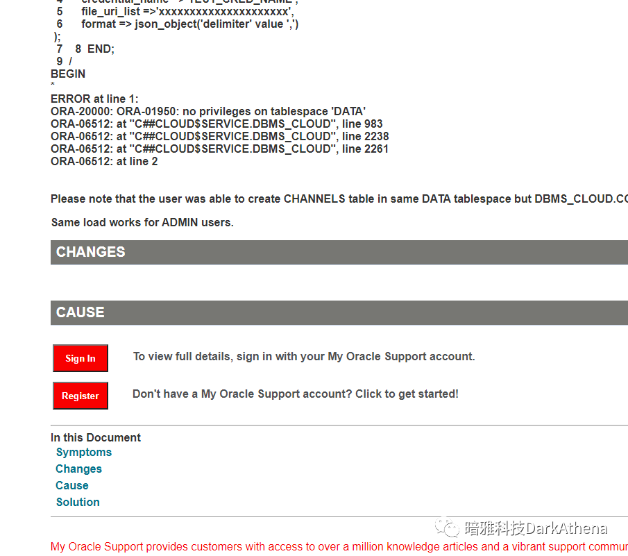 你在网上搜索自己遇到的问题时,看到MOS的页面,就能点击下面的SignIn登录进去,看到ORACLE官方人员对此问题的回复了