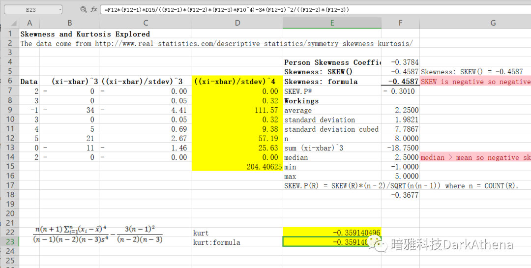 • 本文作者: DarkAthena[1]• 本文链接: https://www.darkathena.top/archives/skew-kurt-sql-excel• 版权声明: 本博客所有文章除特别声明外,均采用CC BY-NC-SA 3.0[2] 许可协议。转载请注明出处!