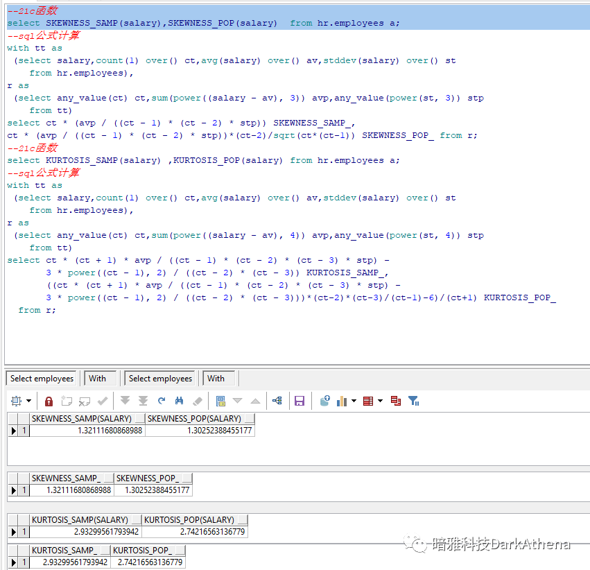 在oracle21c版本中,添加了4个有关峰度和偏度的聚合函数,分别是