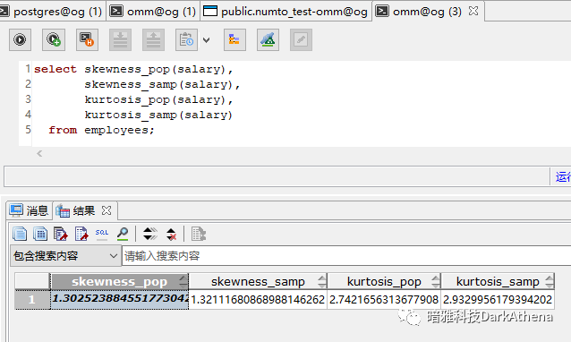 1.SKEWNESS_POP-总体偏度2.SKEWNESS_SAMP-样本偏度3.KURTOSIS_POP-总体峰度4.KURTOSIS_SAMP-样本峰度