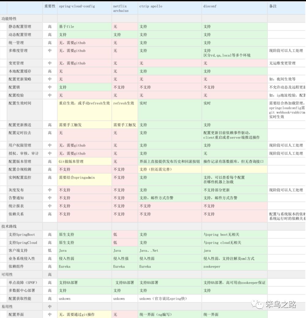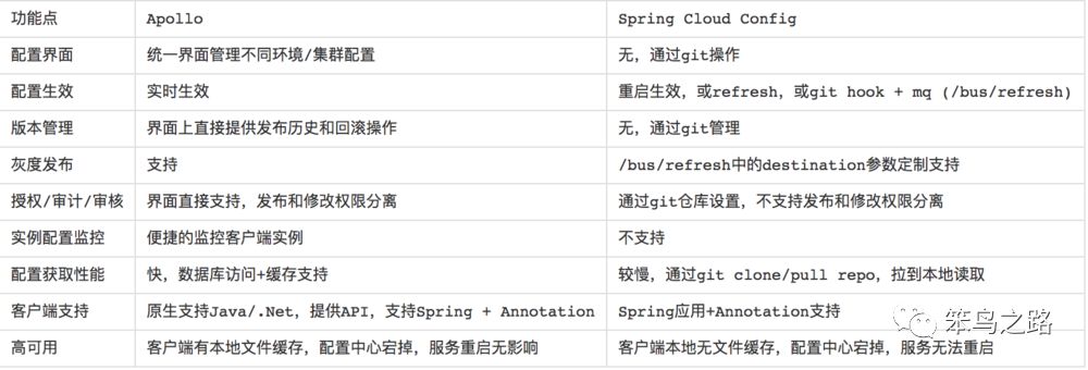 下面就针对Spring Cloud Config和Apollo配置中心做个更加直观的比对: