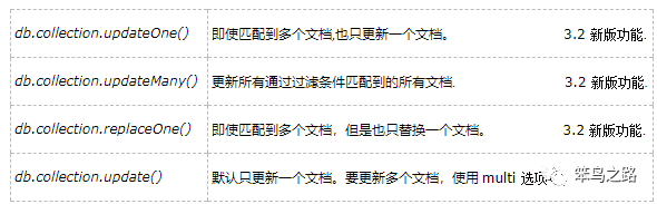 (2) 更新文档:类似于sql的set,指定要执行的修改或替换文档