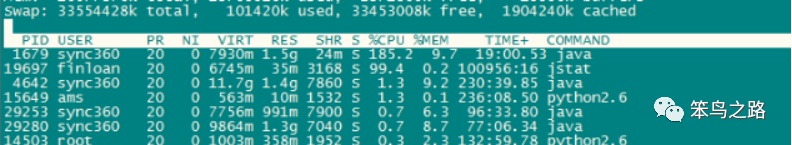 1.登陆应用机器,top -d 1命令查看 当前占用cpu资源最多的,一般排名第一位肯定是java进程