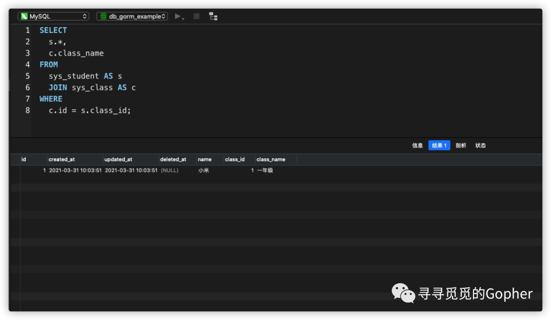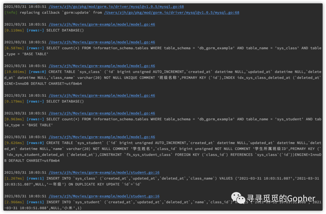 可以看到 gorm 在为我们创建表的时候加入了 id