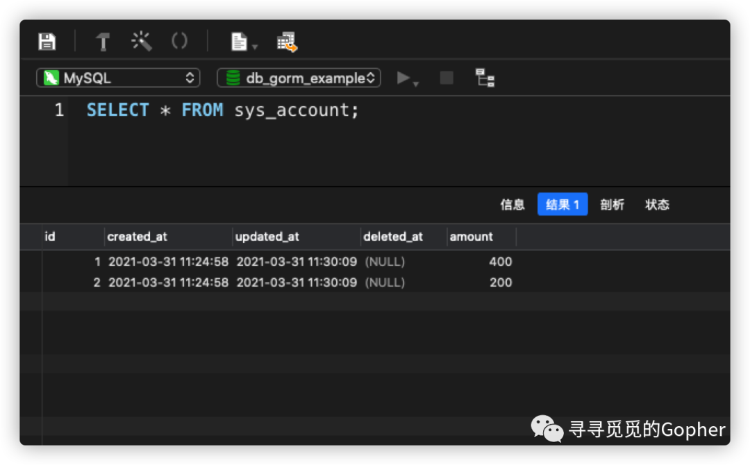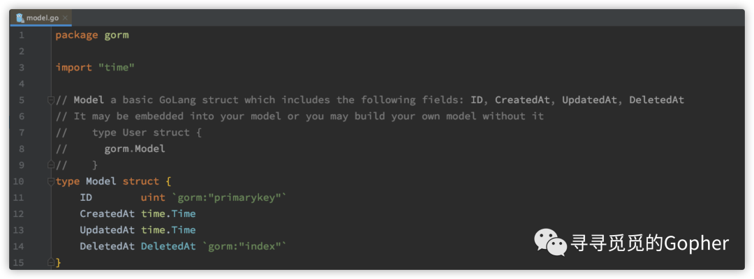四个字段,这其实是在定义模型的时候,我们在结构体中嵌入的 gorm.Model