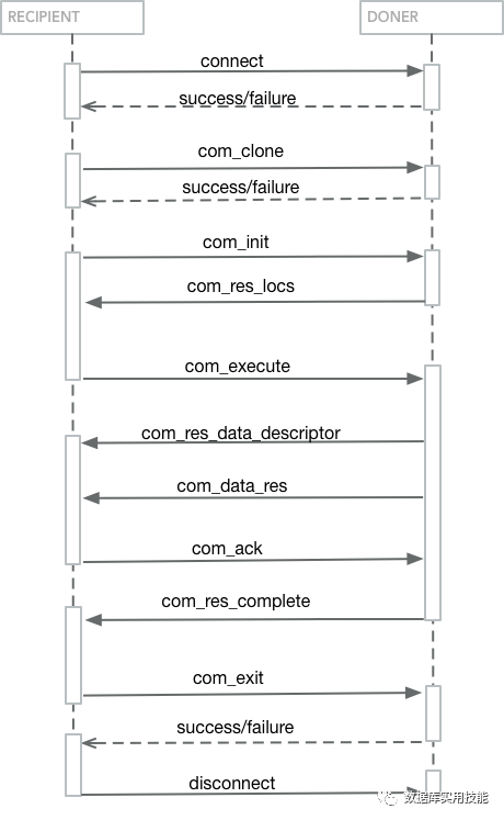COM_INIT: 协商版本号,存储引擎发起clone操作,源端(DONER)的locater会返回给目的端(RECIPIENT),locater是一个innodb存储引擎内部表示snapshot状态的逻辑指针,协商版本号未来可以支持不同版本间的clone;