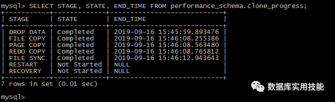 mysql> SELECT STATE FROM performance_schema.clone_status;