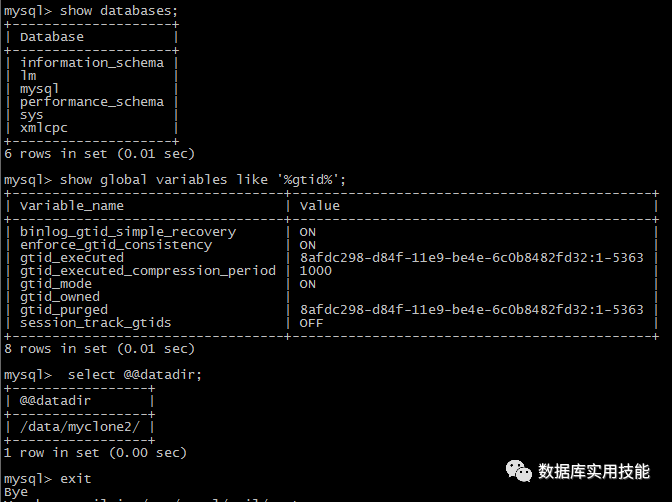 xtrabackup恢复时需要在mysql中执行reset master;然后set global gtid_purged="UUID:NUMBER",具体的UUID:NUMBER的值为备份文件中的xtrabackup_info文件的内容;克隆不需要这个操作步骤,默认克隆完就可以建立复制了。