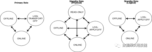 Broker管理的数据库可以存在多种不同的状态,在DG中扮演不同角色的数据的状态类型也不一样,详细状态如下。