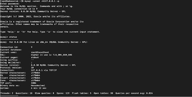 要使用 SMx 连接通过 TLS 登录 MySQL,“mysql”客户端必须与 BabaSSL 库一起运行。确保 LD_LIBRARY_PATH 具有 /usr/local/lib64 并将 mysql 客户端登录到 MySQL 服务器