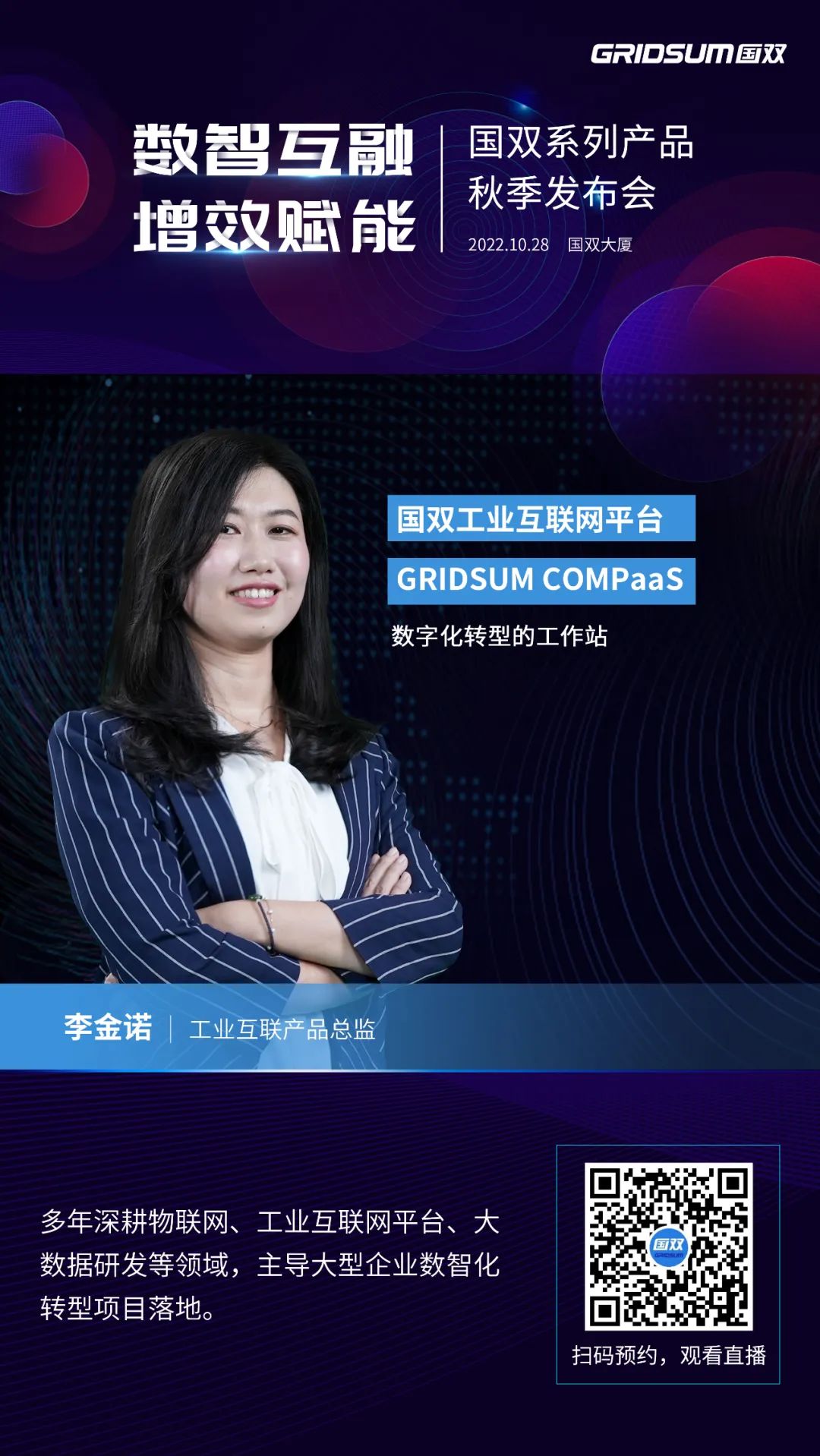Gridsum COMPaaS是依托国双大数据平台、人工智能平台、边缘计算等技术能力,在物联网等基础设施上构建起来的企业级计算平台,即服务企业数字化发展的工业级PaaS平台。在即将举行的国双系列产品秋季发布会上,Gridsum COMPaaS3.0还会有哪些亮点?届时工业互联产品总监李金诺将向大家进行更详细的介绍。点击下方或扫描下方二维码预约直播,及时观看精彩内容!