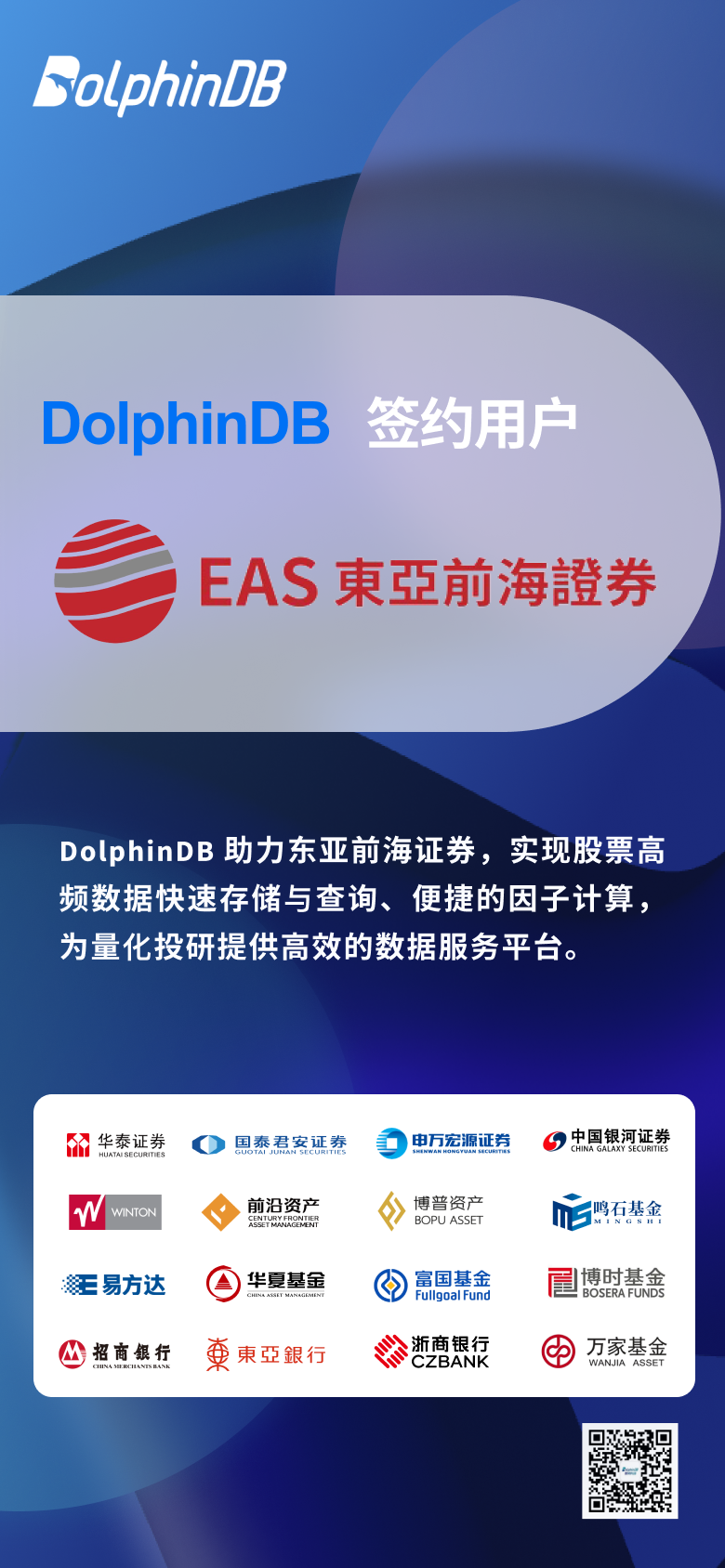 DolphinDB 助力东亚前海证券,实现股票高频数据快速存储与查询、便捷的因子计算,为量化投研提供高效的数据服务平台。