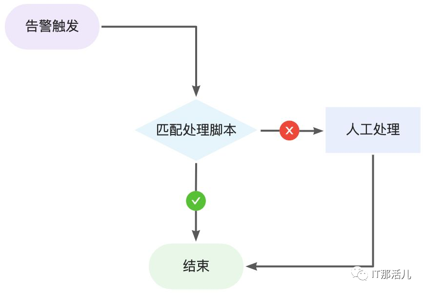 积极的故障自愈,就是在进行故障自愈的过程中要对故障根因进行分析,当然这种故障也包含了很复杂的故障处理流程,可能需要拉通各种的运维工具,以及需要调动不同的专业组的人进行一起协同处理故障,像这种告警是一个流程化的工程,首先是触发一个工单(类似的故障可能不能第一时间对故障进行服务)去跟进这个故障推动他闭环,第二是需要人工判断使用那些脚本,执行什么样的操作去进行告警恢复。