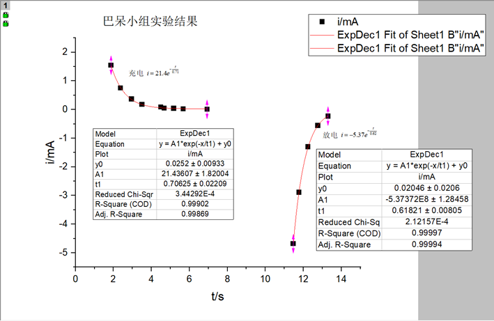 观察电容器充、放电现象,原来的时候,因为其分组且需要用传感器,一直没有去做它。后来尝试使用手机录视频的方式,得到电容器充电和放电的电流-时间数据,再画出来图像,然后去研究了一些东西。