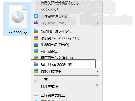 3.选中【sql2008】软件压缩包,鼠标右击“解压到sql”