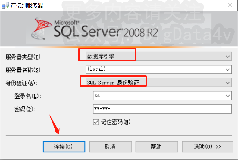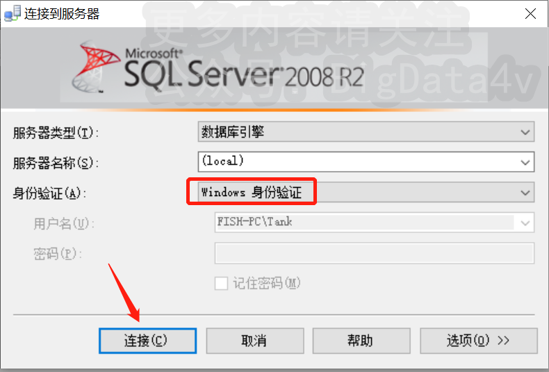 27.点击【连接】(服务器名称就是电脑的IP地址,这里选择的是本机,所以写local就可以了,俩种连接方式任选其一即可)