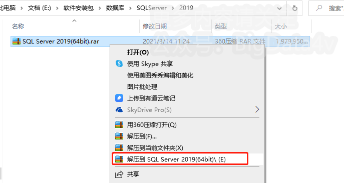 1.右击【SQL Server 2019(64bit)】压缩包选择【解压到 SQL Server 2019(64bit)】