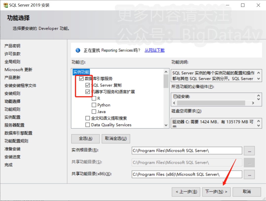 9.选择需要安装的功能(可根据自己的需求选择);修改路径地址中的【C】可更改安装位置(建议不要安装到C盘,可将C改为D或其它磁盘,倘若不熟悉的情况下,建议安装到默认路径);点击【下一步】