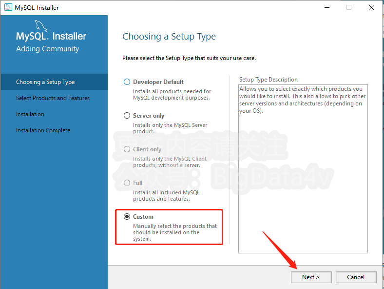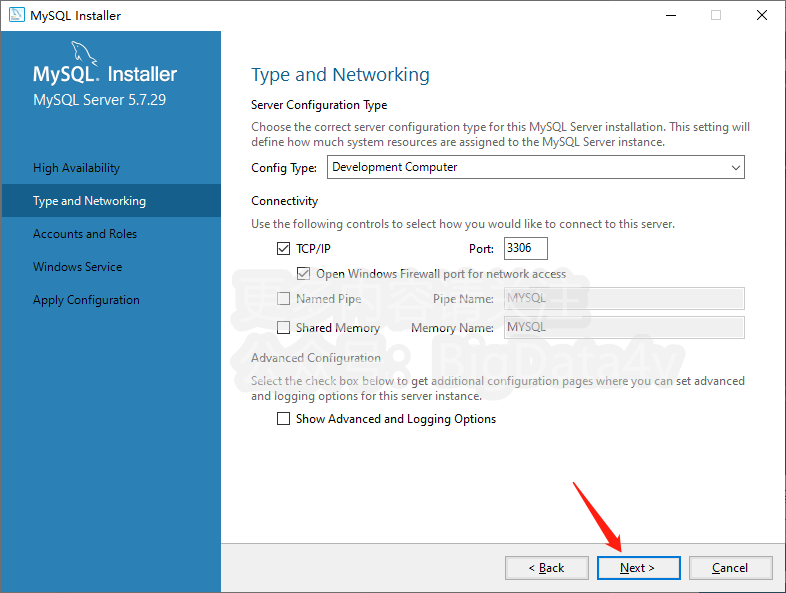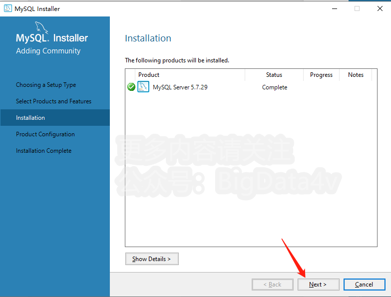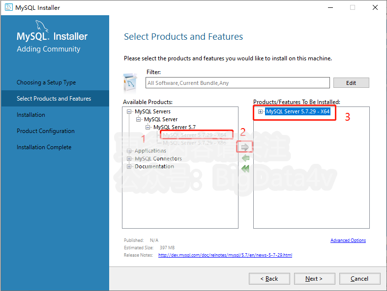 6.点击【MySQL Server 5.7.13-X64】前的“+”勾选【Documentation】,点击【Next】。