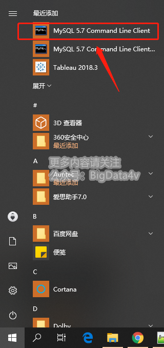18.点击桌面左下角【开始】图标,点击【MySQL 5.7 Command Line Client】。