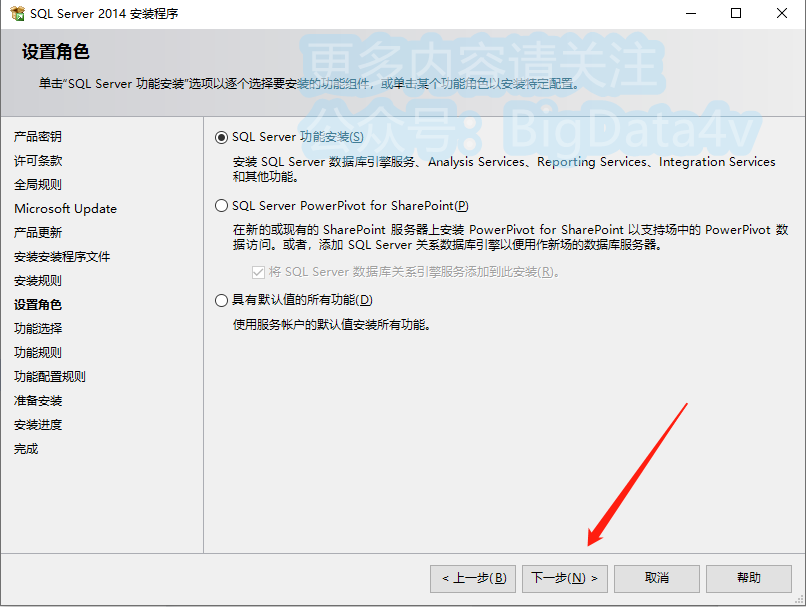 11.勾选【SQL Server功能安装】,点击【下一步】