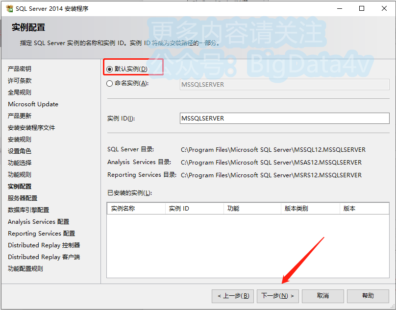 13.勾选【默认实例】,点击【下一步】