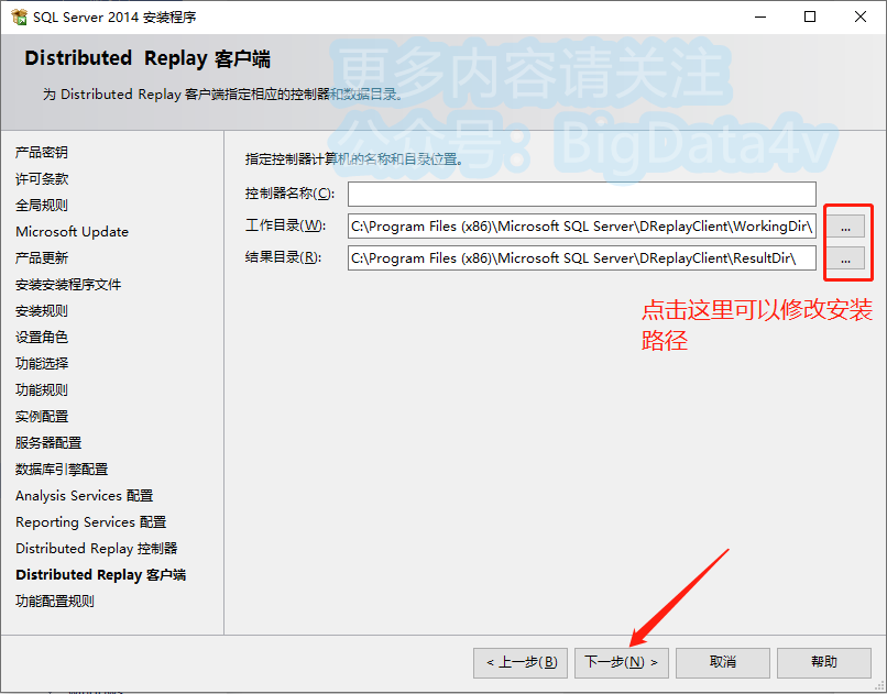 18.分别点击【...】更改软件安装路径:建议安装到除C盘以外的磁盘,可在D盘或其它盘里面新建一个文件夹【sql】,点击【下一步】