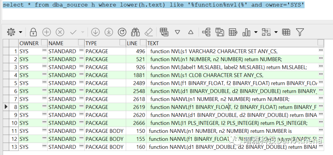于是我在sys用户下找到了standard这个package,里面就有很多特熟悉的函数,而且也符合我之前的一个理解: