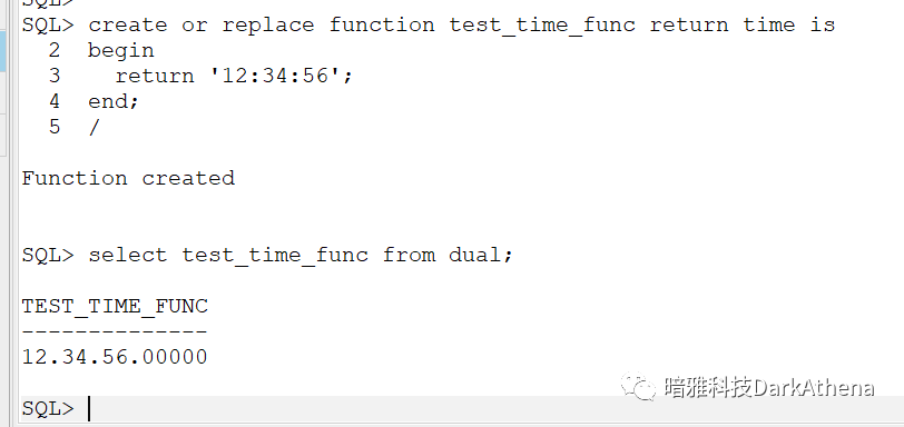 select test_time_func from dual;