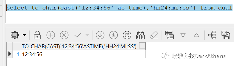 select to_char(cast('12:34:56' as time),'hh24:mi:ss') from dual