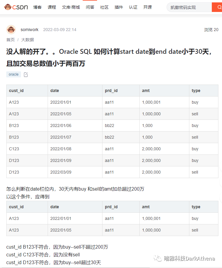 这玩意也是个比较难啃的内容,但MATCH_RECOGNIZE语法的确也可以替代一些分析函数的使用场景,尤其是在计算连续数据的拐点上,具有语法简洁易懂(maybe?)的优势,当然这也是oracle独有的罢了。