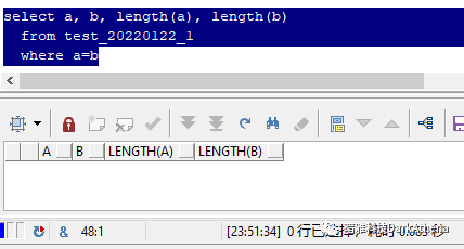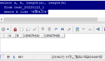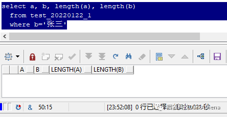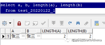 上面这个sql,查询了a和b两个字段,均为"张三"两个汉字,并且使用length函数检查,长度均为2。但是,当你看到下面这几个sql的输出结果时,很有可能第一反应是: