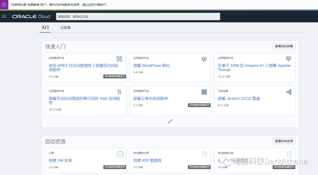 13. Oracle Cloud的管理面板,你可以在这里创建你的免费云主机或云自治数据库等