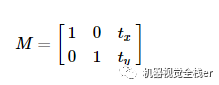 平移是物体位置的移动。如果你知道沿着(x,y)方向的移动,移动的量用($t_x$,$t_y$)表示,你可以创建变换矩阵M如下: