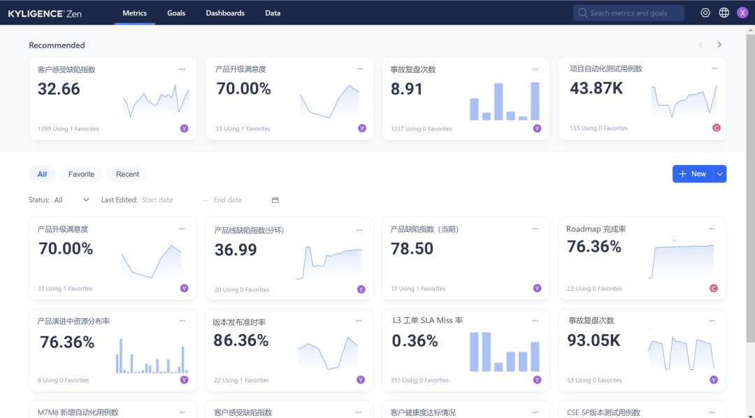 企业客户的业务场景多样、业务需求复杂,对产品有着更高的要求。而效能的提升除了顶层设计与规划、研发流程的改进外,更需要一个数字化工具进行指标监控、驱动决策优化。Kyligence Zen 可以很好地满足业务需求,以指标作为提升研发效能的抓手,帮助企业搭建指标体系,实现关键过程的可观测性,数字化驱动优化决策,满足更高标准的产品创新和交付。