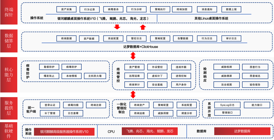 随着数字化进程的深入推进和新一代信息技术的高速发展,信息安全问题日渐突出。而终端产品的广泛应用,也促使行业用户对终端网络安全防护提出了更高的要求。如何提高对不同终端设备的统一安全管理能力,及时处理复杂组织下终端设备的病毒防护、安全运维、安全审计、网络安全、威胁检测与响应等问题已成为当下需重点关注并亟需解决的痛点。麒麟软件联合亚信安全共同推出基于银河麒麟高级服务器操作系统V10的端点安全管理解决方案,通过建设端点安全体系,为行业用户终端设备提供管理、运维、防护、检测、响应、恢复于一体的安全防护方案。