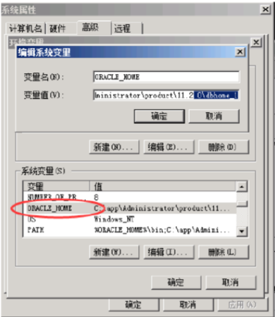 添加独立的oracle_home环境变量,变量值为路径:C:\app\Administrator\product\11.2.0\dbhome_1