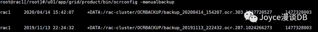 /u01/app/grid/product/bin/ocrconfig -manualbackup