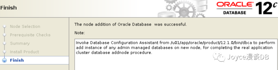 最后在新节点执行/u01/app/oracle/product/12.1.0/root.sh,执行完毕后,会有个提示如下