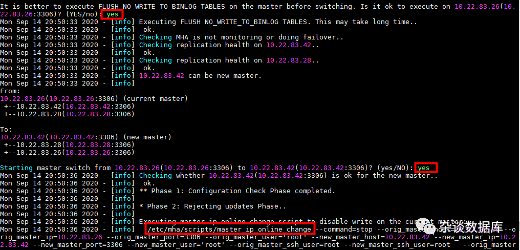 Mon Sep 14 20:09:08 2020 - [info] Master failover to 10.22.83.26(10.22.83.26:3306) completed successfully.