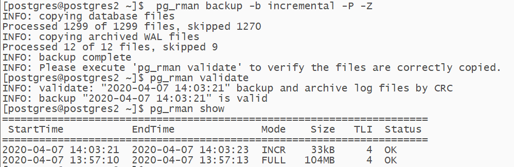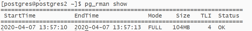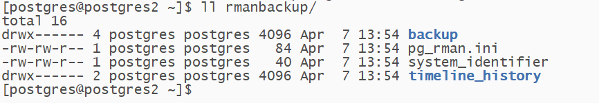 [postgres@postgres2~]$ export BACKUP_PATH=/home/postgres/rmanbackup