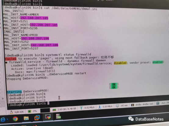 3) 注意,两台主机的 dmmal.ini 文件相同,配置成功后分别重启dmserver