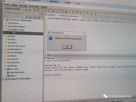 至此,DM8同平台上的dblink实验完美结束!